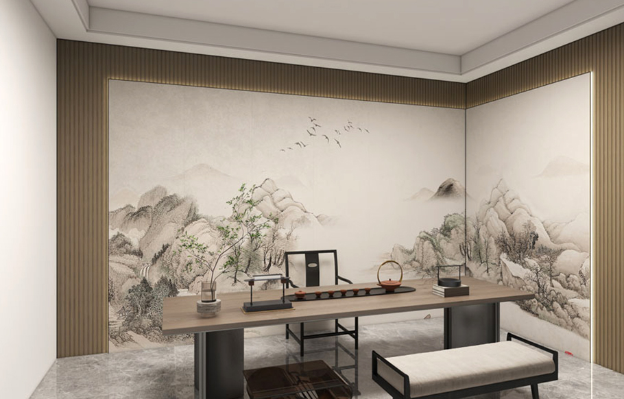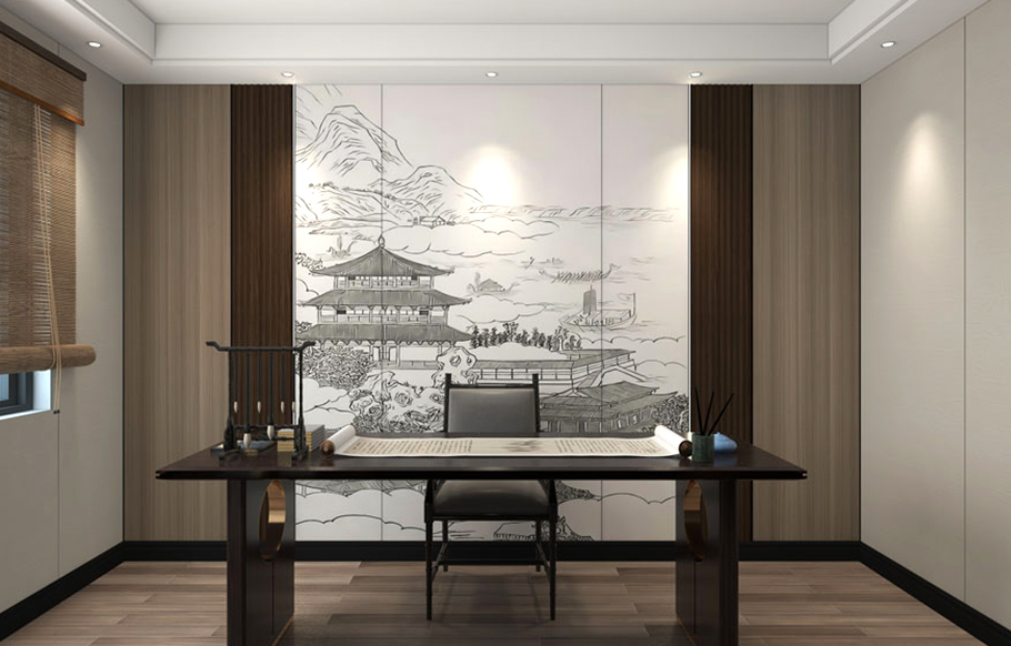 Dinding Latar Belakang Belajar di Rumah—Gaya Cina Baru