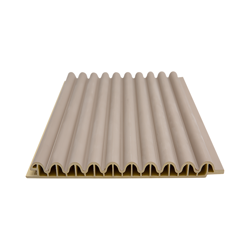 Kisi-kisi cekung 125mm terbuat dari bubuk kayu dan bubuk kalsium, dipres panas dan dibentuk secara presisi pada suhu tinggi. Ini mempertahankan tekstur hangat dari bubuk kayu sambil memanfaatkan bubuk kalsium untuk meningkatkan kekakuan strukturalnya, menciptakan komponen dekoratif yang menyeimbangkan tekstur elegan dengan nilai praktis.